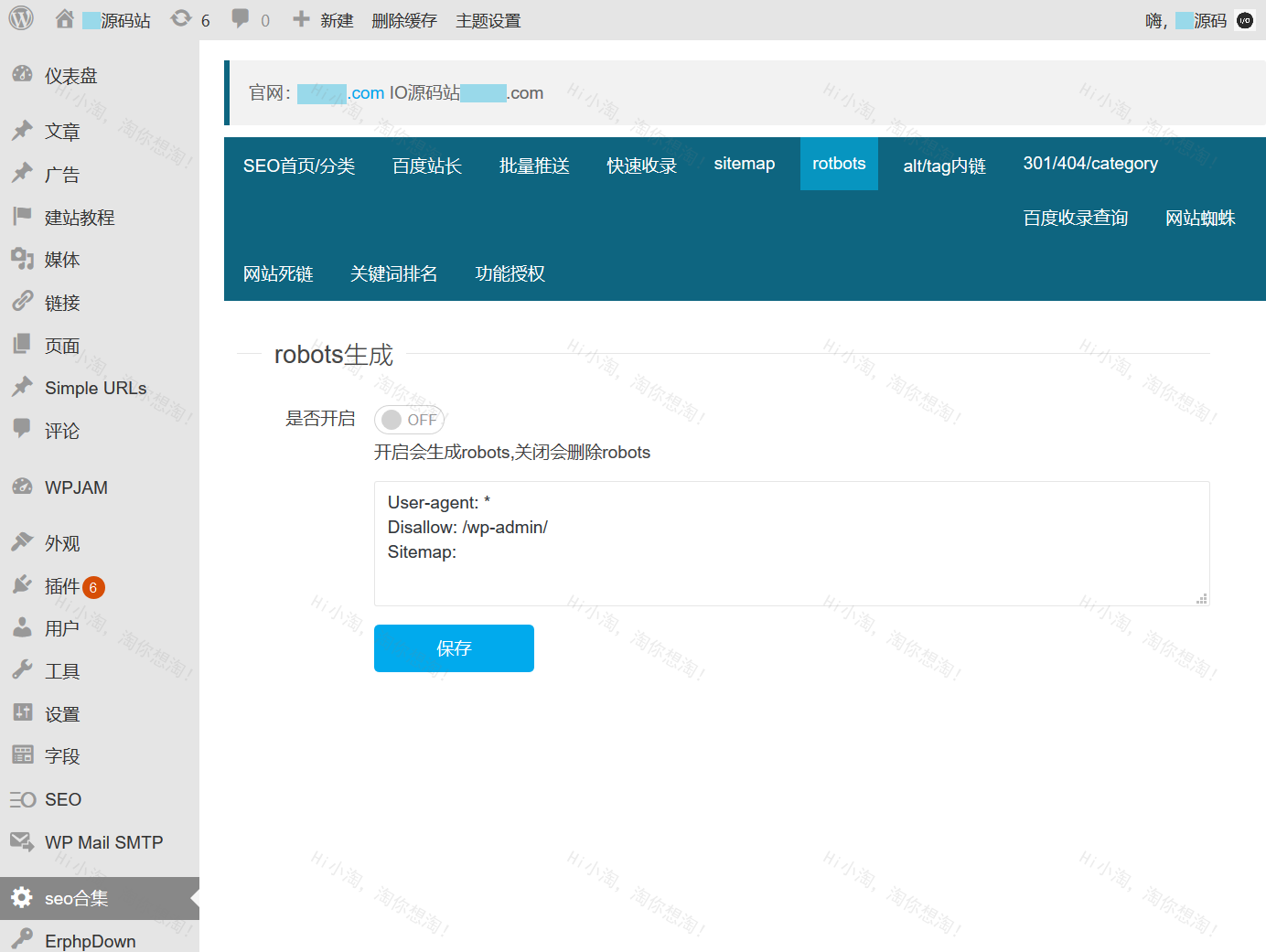 含百度站长、tag标签内链、百度地图sitemap、关键词排名查询监控、网站蜘蛛、robots、图片alt标签、天级推送、category隐藏、死链查询、百度自动推送、批量提交URL到站长、百度收录查询、批量推送未收录、301/404等功能。
